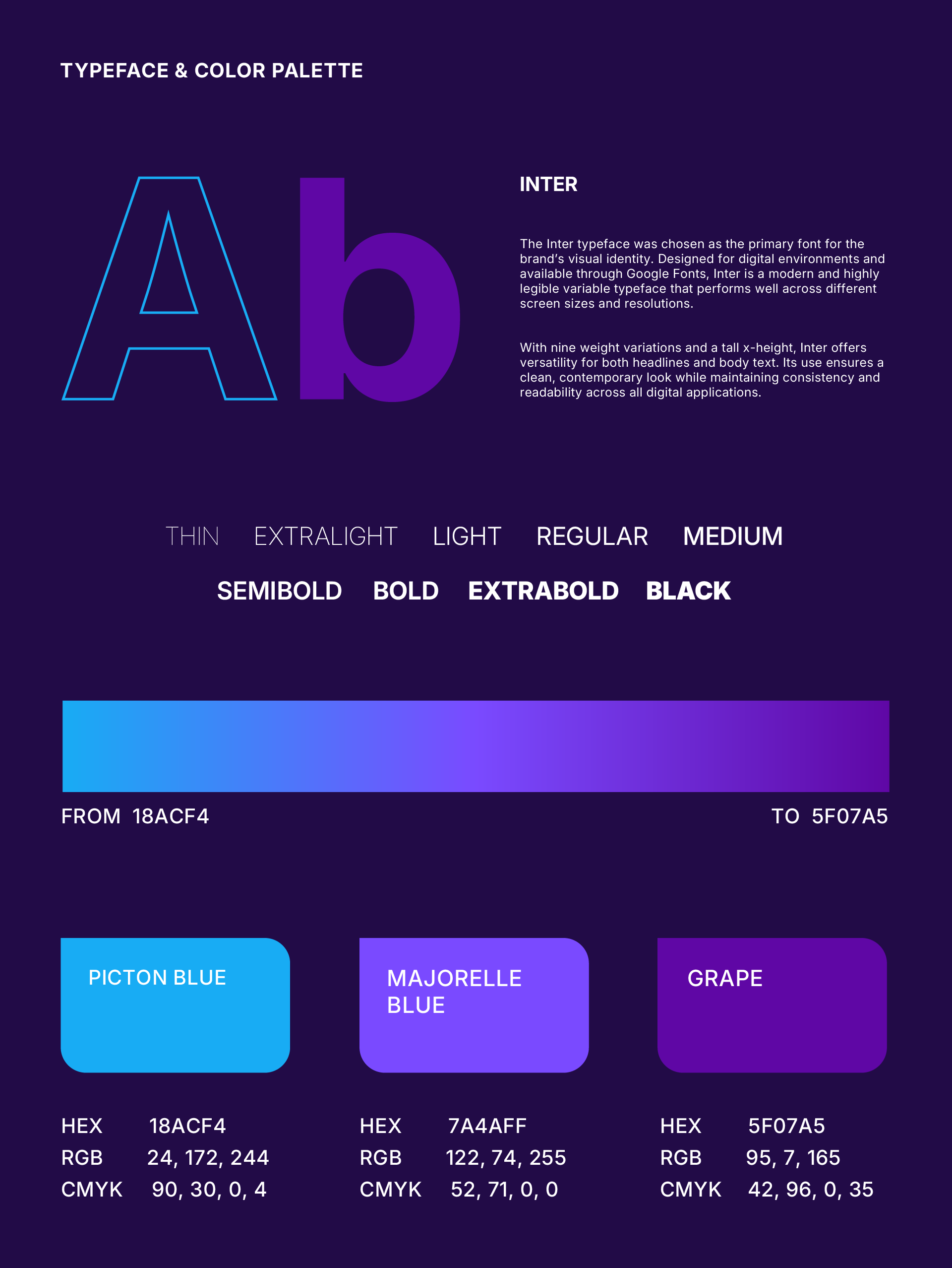 I developed a refreshed brand identity rooted in a modern and technological aesthetic, while subtly evoking the softness and friendliness of berries. The new logomark incorporates abstract, geometric shapes that suggest both data flow and berry clusters. A refined blue-purple gradient was chosen to reflect the brand’s tech focus and creative energy. The typography was updated to a clean, contemporary sans-serif that enhances legibility and reinforces the modern look.