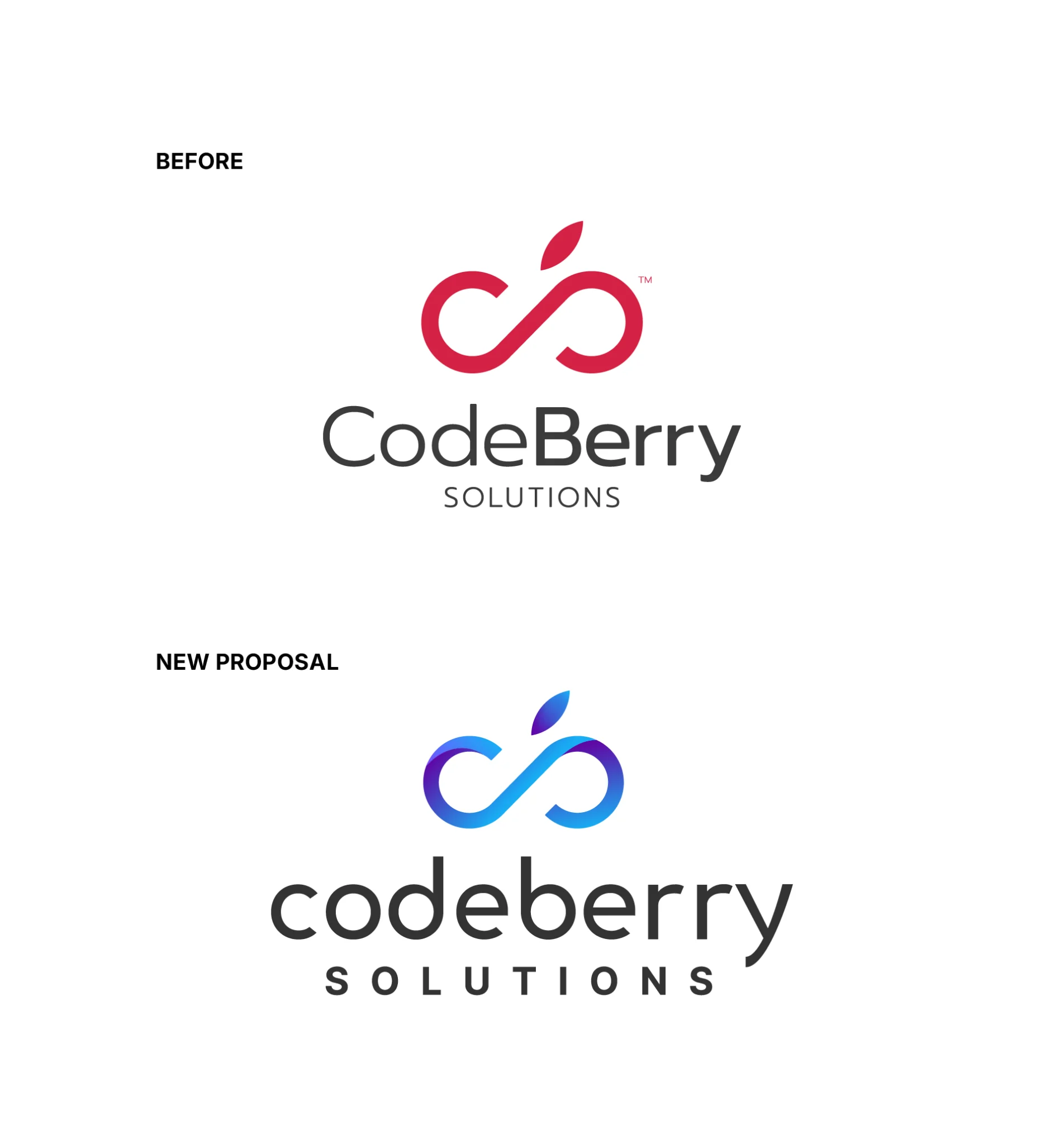 The goal of the project was to redesign the brand to feel more tech-forward while maintaining a warm and approachable vibe. Visual elements were incorporated to subtly reference "berries," aligning with the name "CodeBerry." Additionally, a new color palette in shades of blue and purple was defined to communicate innovation, trust, and creativity.